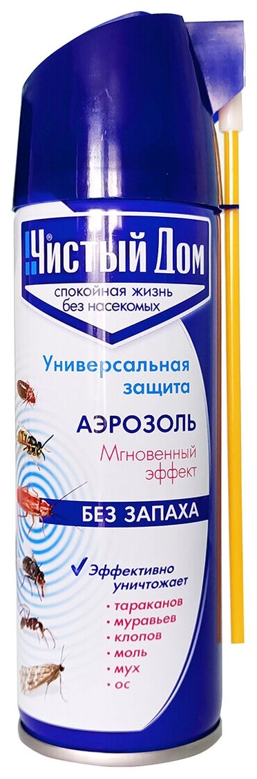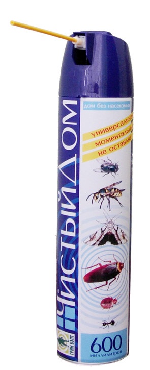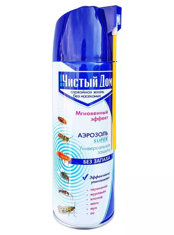 держа баллон вертикально, нажать на распылитель и с расстояния 20 см направить струю «Чистый Дом аэрозоль супер» в возможные места обитания, скопления и передвижения насекомых.