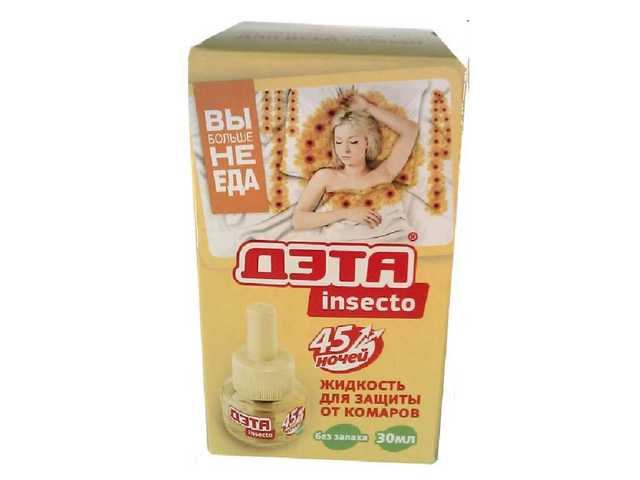 Жидкость от комаров Дэта незаменима для уничтожения комаров и других летающих насекомых (москитов и мошек) в помещении.