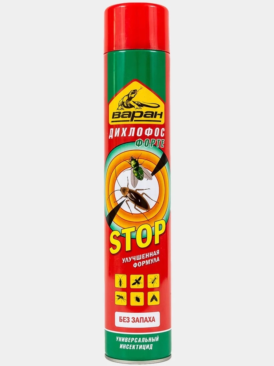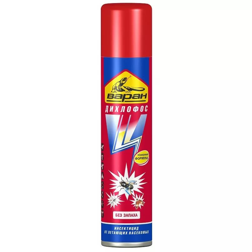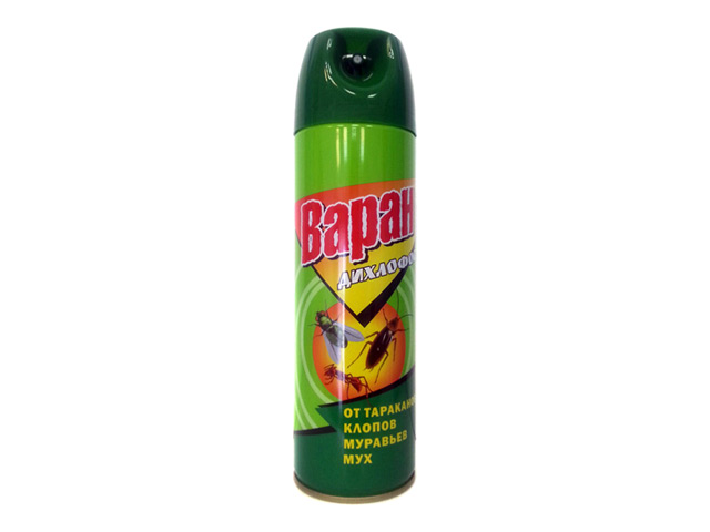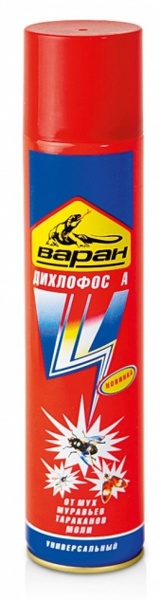 ДИХЛОФОС ВАРАН универсальный - средство инсектицидное для уничтожения летающих (мух, комаров, москитов) и нелетающих (тараканов, клопов, муравьев) насекомых в помещениях.